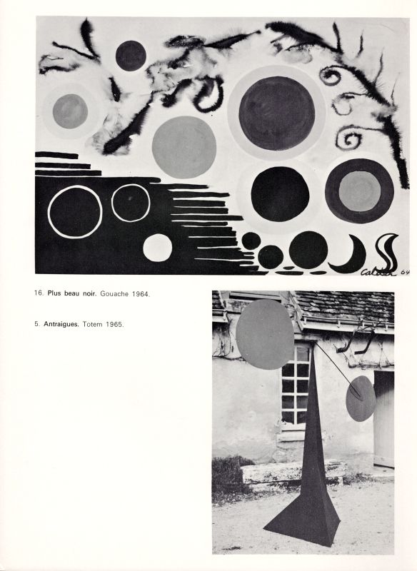 First Edition. Paris, Maeght Editeur [Aimé et Marguerite Maeght], 1966. Folio (27.8 cm wide x 37.8 cm high). 28 pages plus 4 pages of lithographed Cover. (Text partially paginated up to page 15 and then continued without pagination). This Volume also includes a large section of black-and-white-photographs of Totems and Gouaches of Calder. Original, illustrated softcover / brochure. Excellent condition with only minor signs of wear.