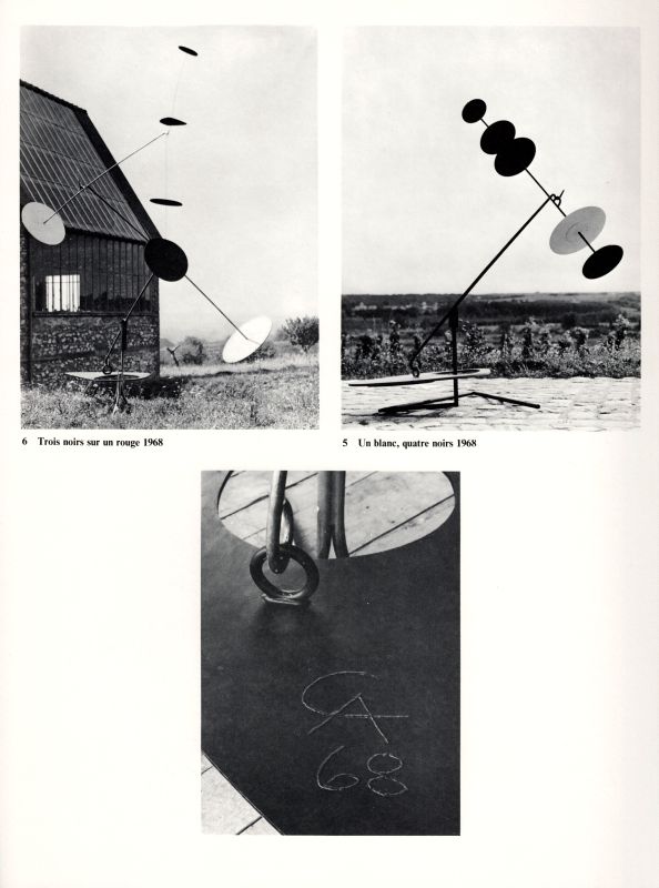 First Edition. Paris, Maeght Editeur [Aimé et Marguerite Maeght], 1968. Folio (27.8 cm wide x 37.8 cm high). 24 pages plus 4 pages of lithographed Cover. (Text partially paginated up to page 14 and then continued without pagination). This Volume also includes a large section of black-and-white-photographs of Sculpture by Calder. Original, illustrated softcover / brochure. Excellent condition with only minor signs of wear.