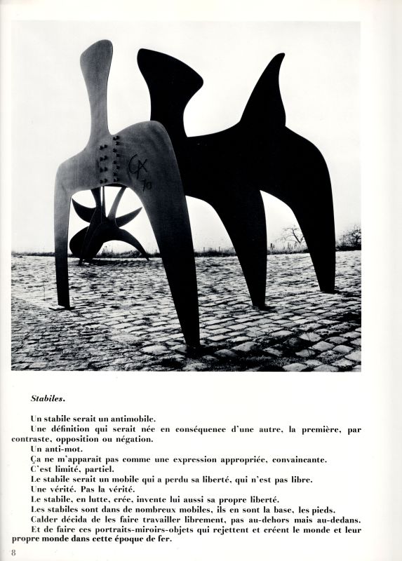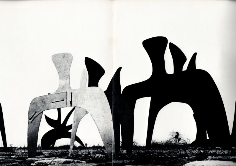 Derrière Le Miroir N°190 – Février 1971 [With 5 lithographes originales of “Stabiles” et “Animobiles” (including front and rear cover) / One of these lithographs is a fantastic double-page colour-lithograph)]. Avec Essais: “Calder : La Liberté” / “Aux portes de L’Enfer” par Carlos Franqui (Traduction Jean-Franci Reille) / [Photos of Stabiles par Clovis Prévost]. [Calder’s Stabiles “Three Bollards” from 1970 look like possible inspirations for Heptapods “Abbott and Costello” in Denis Villeneuve’s Film “Arrival”].
