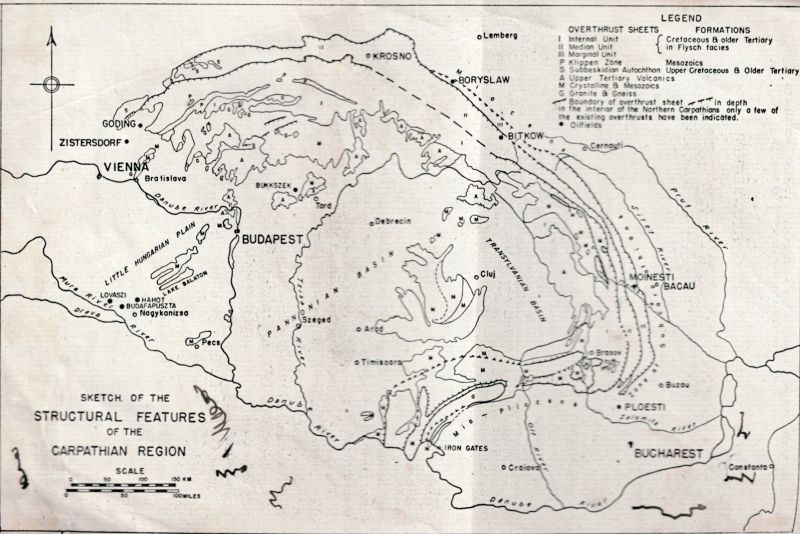 1. Sketch of the Structural Features of the Carpathian Region showing the Transylvanian Basin etc.