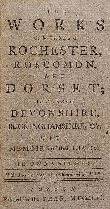 Rochester, The Works of the Earls of Rochester, Roscomon [sic], and Dorset; The Dukes of Devonshire