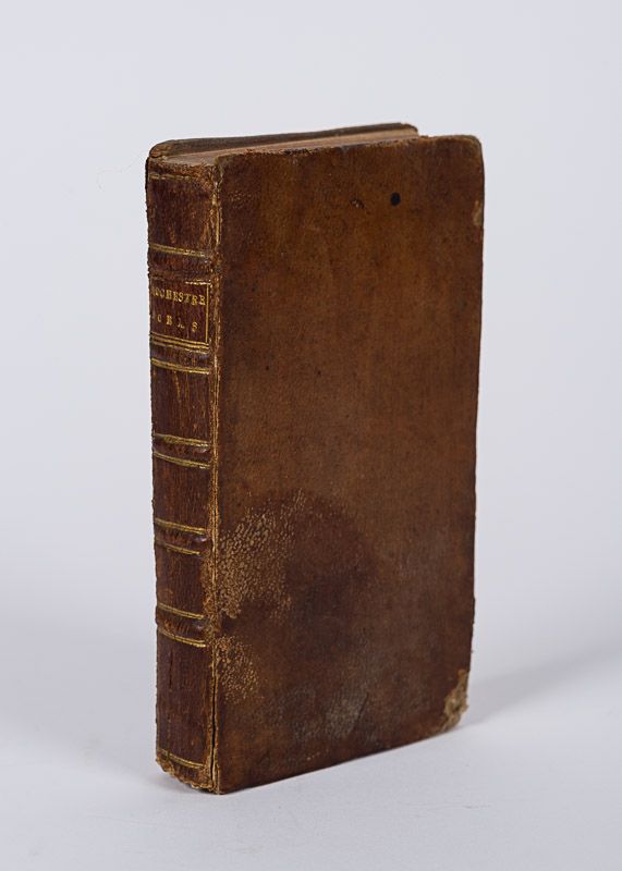 Two Volumes, bound in One Volume (complete set). London, Printed in the Year, 1756. Small Octavo (9.3 cm x 16.2 cm). Pagination: Volume I: Frontispiece-Portrait of John, Earl of Rochester, 168 pages with five copper-engravings (plus Frontispiece) / Volume II: Frontispiece-Portrait, 168 pages with one copper-engraving (plus Frontispice). Hardcover / Original, 18th full leather of the 18th century with gilt lettering and ornament on spine. In protective Mylar. Firm with NO splitting but spine starting. Binding rubbed and some bumping to corners only. Interior in excellent condition. From the library of Daniel Conner (Connerville / Manch House), with blindstamped name of “Manch, Ballineen, Co. Cork” to endpaper and half-title.
