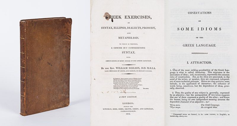 Greek Exercises, In Syntax, Ellipsis, Dialects, Prosody, And Metaphrasis. To which is prefixed, A Concise but Comprehensive Syntax. With Observations on some Idioms of the Greek Language. By the Rev. William Nelson, Late Professor of Greek and Hebrew in Belfast College.