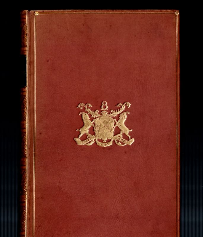 London, Walter Smith, 1881. Octavo. XI, 388 pages. Hardcover / Extremely beautiful and decorative full leather with marbled edges all around and marbled paper covered pastedown and endpaper. Prize-Binding with armorial board of Haberdasher’s Monmouth Grammar School with their Motto “Serve and Obey”. Excellent and firm condition with only minor signs of wear.