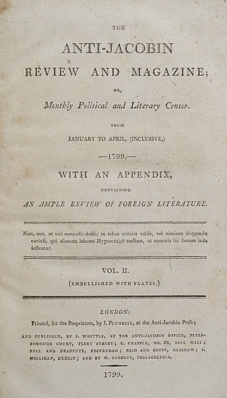 This is Volume II of “The Anti-Jacobin Review and Magazine.