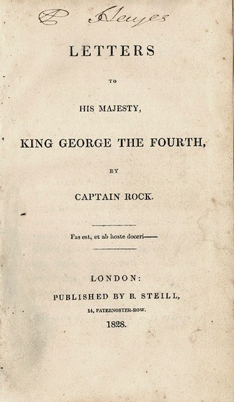 Roger O’Connor & Arthur O’Connor – Collection. A set of five Titles (in six Volumes) from the Library of Henry Daniel Conner and Daniel Conner at Manch House (Ballineen / Dunmanway]. Rare Volumes connected to the History of the Brothers Roger O’Connor [″Chronicles of Eri”] and Arthur O’Connor [″United Irishmen”]. From the 18th-19th century library at Manch House. The collection includes: 1. [O’Connor, Roger] Captain Rock – Letters to His Majesty, King George the Fourth. [This is the Volume owned by the Conner – Family of Manch House and it bears the Bookplate of Henry Daniel Conner] / 2. O’Connor, Arthur [United Irishman] & O’Connor, Roger [Irish Nationalist and Publisher of The Chronicles of Eri] / 3. G.B. O’Connor – O’Connor, G.B. Irish and other Fragments. [Includes the following essays: Irish Ethical Problems / Marshal Saxe and Diminishing Populations / The Irish Republican Demand / The Anglo-Saxon Myth / Irish Facts and Foreign Fictions / The Irish and the Law / Some Anglo-Irish Writers / A National Delusion / The Irish Lord Lieutenant]. Dublin, Hodges, Figgis & Co., no year (c. 1920). Small Octavo. 73 pages. Original Softcover. Very good condition with only minor signs of external wear. A very rare book ! / 4. [O’Connor, Arthur / United Irishmen] Hayter-Hames, Jane. Arthur O’Connor, United Irishman. Cork, Collins Press, 2001. 24 cm. xi, 338 pages, 8 unnumbered pages of plates : illustrations, portraits. Original Hardcover with original dustjacket in protective collector’s mylar. Very good condition with only minor signs of external wear / 5. [Fox, Charles James] / [Arthur O’Connor] / Trotter, John Bernard [Late Private Secretary to Mr.Fox] Memoirs of the Latter Years of the Honourable Charles James Fox [with a lengthy report on a meeting with Irish Revolutionary Arthur O’Connor in Calais]. Third Edition. London, Printed for Richard Phillips, 1811. Includes a longer section in which John Bernard Trotter discusses a chance meeting of Fox with irish Revolutionary, Arthur O’Conno, in a section called the “Independent conduct towards Mr.O’Connor [Arthur O’Connor, brother of Roger O’Connor]: “An incident occured at Calais, which as it excited much remark, and roused a good deal of censure at the time, I shall advert to more length than would otherwise be necessary. It happened that Mr.Arthur O’Connor had arrived at the inn at which we stopped very shortly before. He waited on Mr.Fox, was received by him with that urbanity and openness which distinguished him, and was invited to dinner by him, which invitation he accepted of. It is is well known that, after a long confinement at Fort George, he, and some other Irish gentlemen, agreed with the Irish Government to expatriatethemselves for life. Mr.O’Connor was now on his way to Paris accordingly; when chance brought him to Quillac’s Inn, at the same time with Mr.Fox. His manners were extremely pleasing….” Trotter continues at length to elaborate on the meeting and conduct of Arthur O’Connor, their subsequent visit to the Theatre and three other times of meeting in Calais.