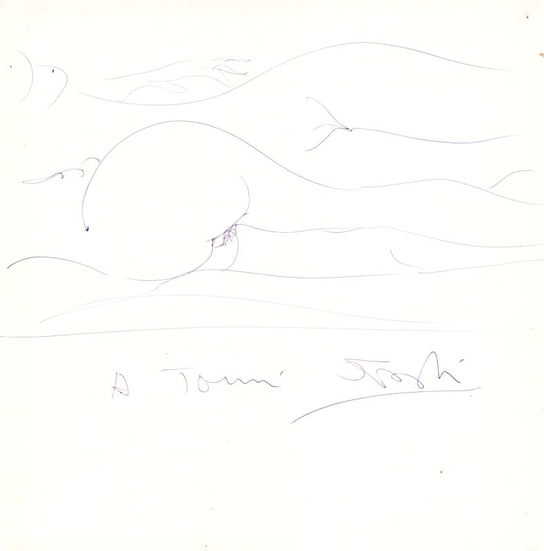 “The Sign and The Earth / Le Signe et la Terre / El Signe i la Terra / El Signo Y la Tierra” – [Book with an “Original drawing of two Nudes” on the endpaper of the publication. Signed and inscribed by Jordi Bonet to Tomi Ungerer: “A Tomi – Jordi”].