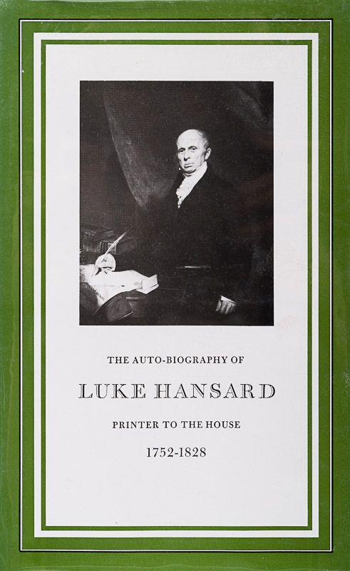The Auto-Biography of Luke Hansard. Printer to the Houe 1752-1828. Edited with an Introduction by Robin Meyers.