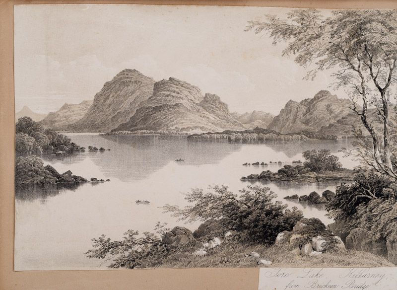 A very rare work of early decorative tourist art for the 19th century traveller to Killarney; beautifully executed.