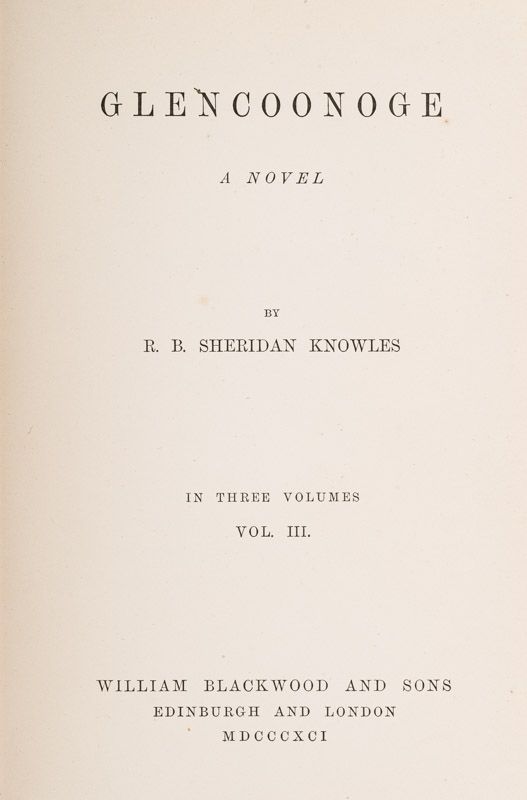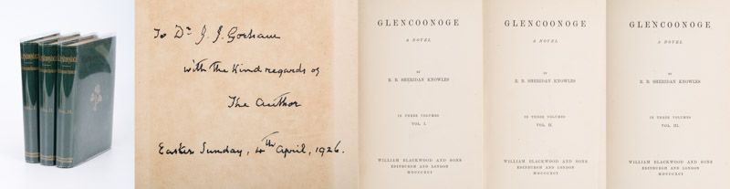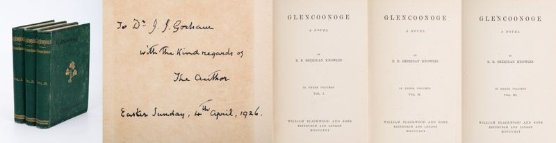 First Edition. Three Volumes (complete). Edinburgh / London, William Blackwood and Sons, 1891. 13.5 cm x 19 cm. 284, 294, 267 pages plus 24 pages of a publisher’s catalogue to the rear of Volume III. Original Hardcover (green decorative cloth with gilt lettering on spine and gilt shamrock to frontcover of all three volumes. Very good condition with some staining to the exterior of Volume I and III.