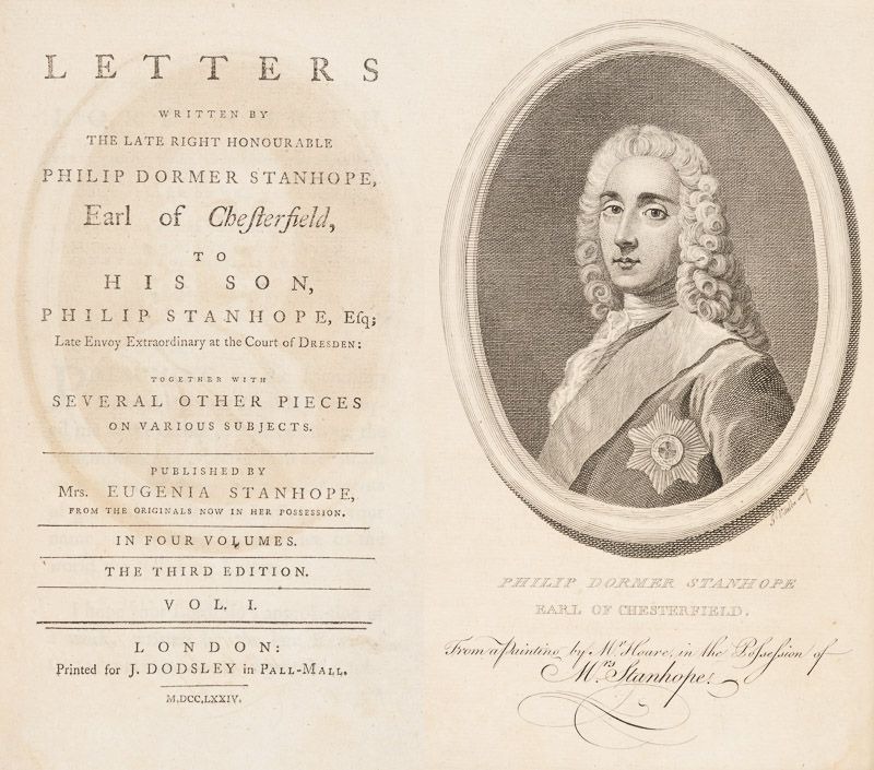 Despite having been an accomplished essayist and epigrammatist in his time, his literary reputation, as a narrative writer, derives from Letters to His Son on the Art of Becoming a Man of the World and a Gentleman (1774) and Letters to His Godson (1890), books of private correspondence and paternal and avuncular advice, which were not meant for publication. (Wikipedia)