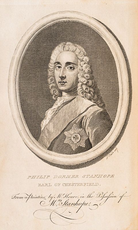 As a politician and statesman, his fame rests upon his short, but brilliant, administration of Ireland as Lord Lieutenant of Ireland (1745-1746). As a courtier, the unrefined Robert Walpole worsted him at the King’s court. Despite being a protector of men of letters, Chesterfield’s want of heart and head in the quarrel over the dedication to A Dictionary of the English Language (1755), inspired the poet Johnson to rewrite the line “Toil, envy, Want, the Patron and the Jayl” (The Vanity of Human Wishes [1749], line 160) in a letter bemoaning the conflicts of personality inherent to the patron-artist relation; Johnson rebuked Chesterfield: “is not a Patron, My Lord, one who looks with unconcern on a man struggling in the water and when he has reached ground encumbers him with help?” Moreover, on publication of the book Letters to His Son (1774), Chesterfield’s advisory correspondence with his natural son, Philip Stanhope, Johnson said that “they teach the morals of a whore, and the manners of a dancing-master” as means for getting on in the world as a gentleman.
