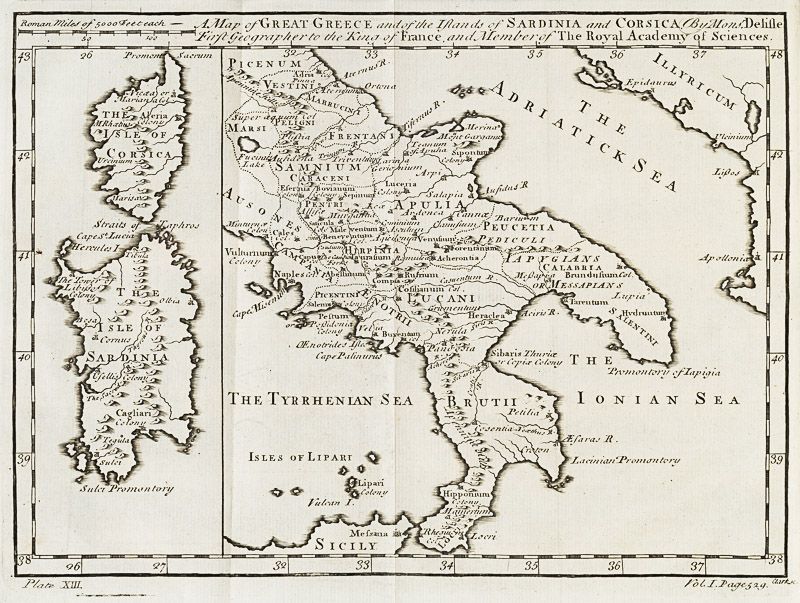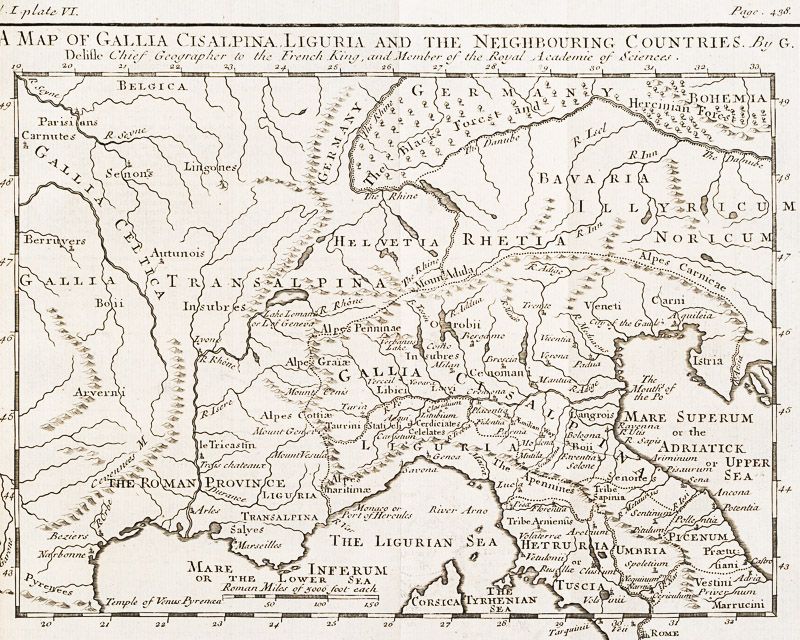 Maps: 1. Folded Map of Latium / 2. Folded Map of Gallic Liguria with Germany’s Black Forest to the North / 3. Map of Great Greece (this being the south of Italy with Sardinia and Corsica and Greece only partially shown to the east)