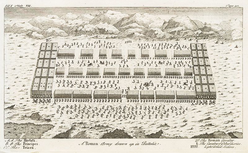 Volume I deals with “Remarks on the History of the Seven Roman Kings” and includes a number of excellent folded maps and several engravings illustrating Roman Warfare and Siege-Tactics: