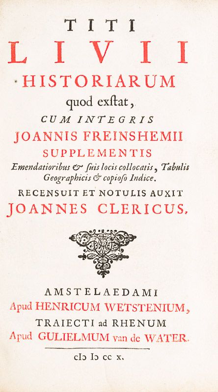 Historiarum quod exstat, cum integris Joannis Freinshemii [Johann Freinsheim] Supplementis. Emendatioribus & suis locis collocatis, Tabulis Geographicis & copioso Indice. Recensuit notulis auxit Joannes Clericus [Jean Le Clerc, also Johannes Clericus].