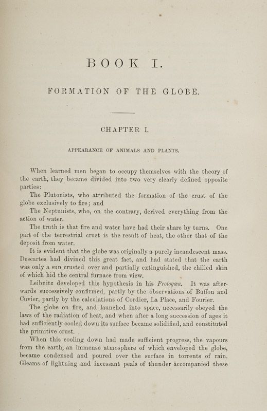 Includes chapters on “The Animal Kingdom / The Coral and its Builders / Insects: Marvels of Insect Organization / Slave-makers and Warlike Tribes (Talking about Insects !) / The Architecture of Birds / The Migrations of Animals / The Vegetable Kingdom / The Seed and Germination / Fossils / The Mountains – Cataclysms and Upheavals of the Globe / Caverns and Grottoes / Volcanoes and Earthquakes / Glaciers and Eternal Snows / The Sidereal Universe / The Stars and Immensity / The Nebulae / The Solar World / Popular Errors on “Monsters and Superstitions” etc.