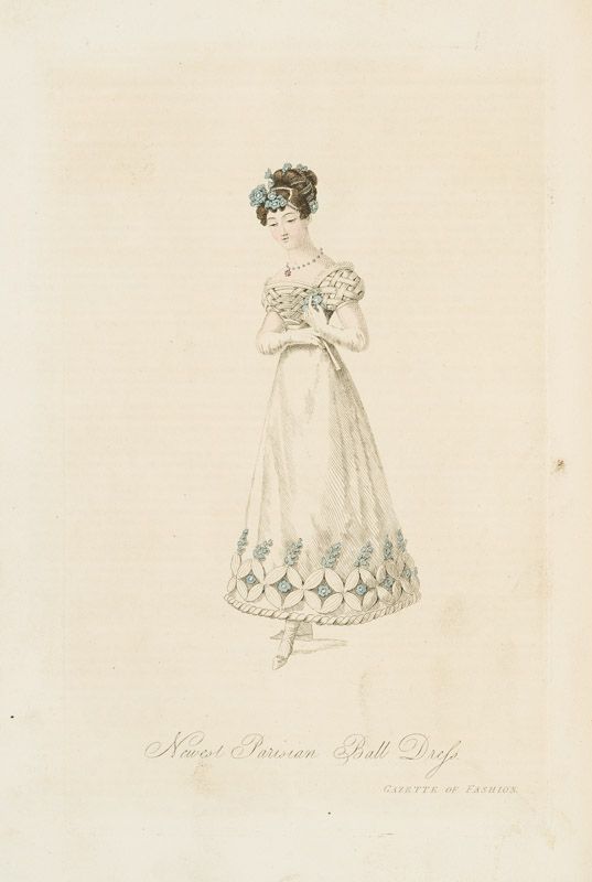 Illustrations in the First Quarter of 1822 include: 1. Portrait of His Majesty (The Duke of York), Portrait of “Robert Southey” [instead of “Young Napoleon”] / 2. Magnificent Parisian Evening Dress (page 33 only one of several text-engravings) / 3. Portrait of “Miss Emily Loveday” / 4. Newest Parisian Ball Dress (beautifully hand-coloured Lithograph or steel-engraving) / 5. Portrait of the Princess Royal of Denmark