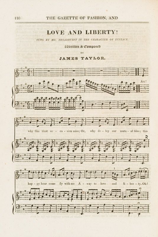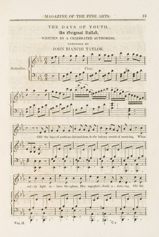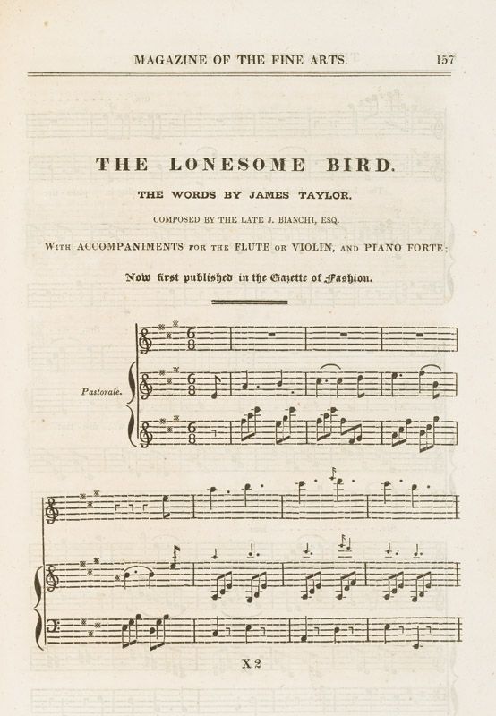 The second quarterly part of this periodcal “contains thirteen original pieces of music, composed and arranged by Messrs. T. Williams, C.Nicholson, J.Bianchi and J.B. and J. Taylor for the Harp, Flute and Piano Forte”.