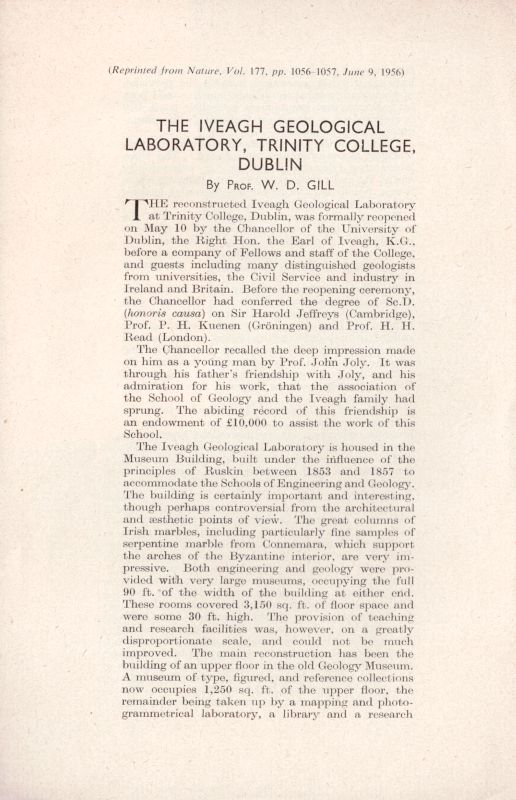 3. [Iveagh Geological Laboratory] – W.D.Gill – “The Iveagh Geological Laboratory, Trinity College, Dublin” (1956)