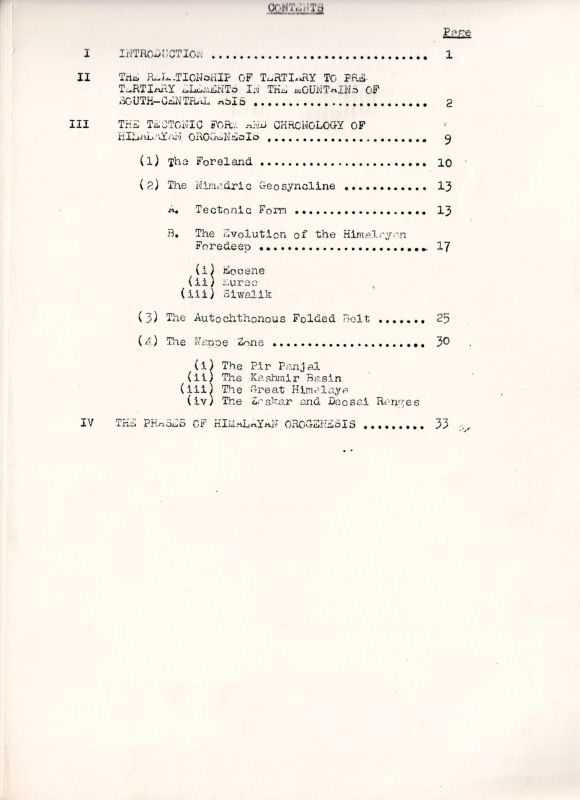 1. [Himalaya] – William Daniel Gill – “The Orogenesis of the North-West Himalaya” – Summary with several Maps regarding the “Analysis of the Himalayan-Kun Lun Mountain Systems and the Kashmir Basin etc. (Original Galley Proofs) (c. 1953 ?)