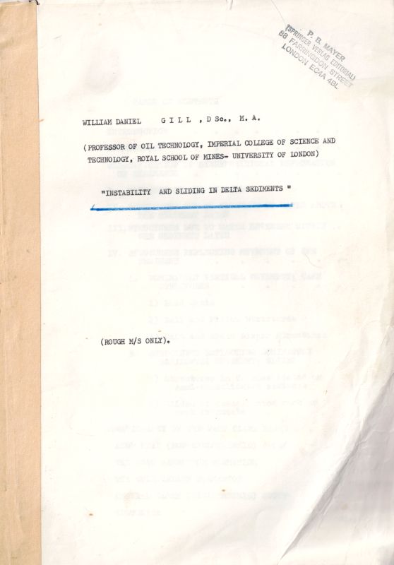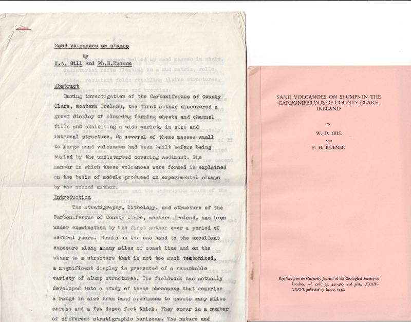 Including original typescript with an abstract on “Sand Volcanoes on Slumps” from W.D.Gill’s library (stapled)