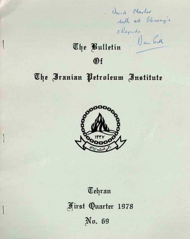(Published in Tehran in 1978 – The Bulletin of The Iranian Petroleum Institute” (First Quarter) – Inscribed and signed by W.D.Gill to his colleague “David Naylor – with all blessings & Regards – Dan Gill”)