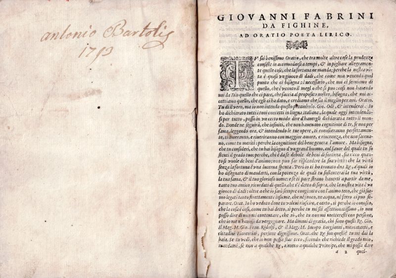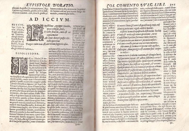 L’Opere D’Oratio – Poeta Lirico Commentate da Giovanni Fabrini da Fighine in Lingua Vulgare Toscana, con ordine, che’l Vulgare e Comento del Latino; et il Latino e Comento del Vulgare, ambedue le Lingue Dichiarandosi l’una con l’altra. Dinuouo in questa terza Editione da molti errori emendato.