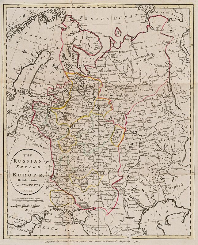 [Russia] – Hand-coloured Large Fold-out-Map of “The Russian Empire in Europe, divided into Governments” (1792)