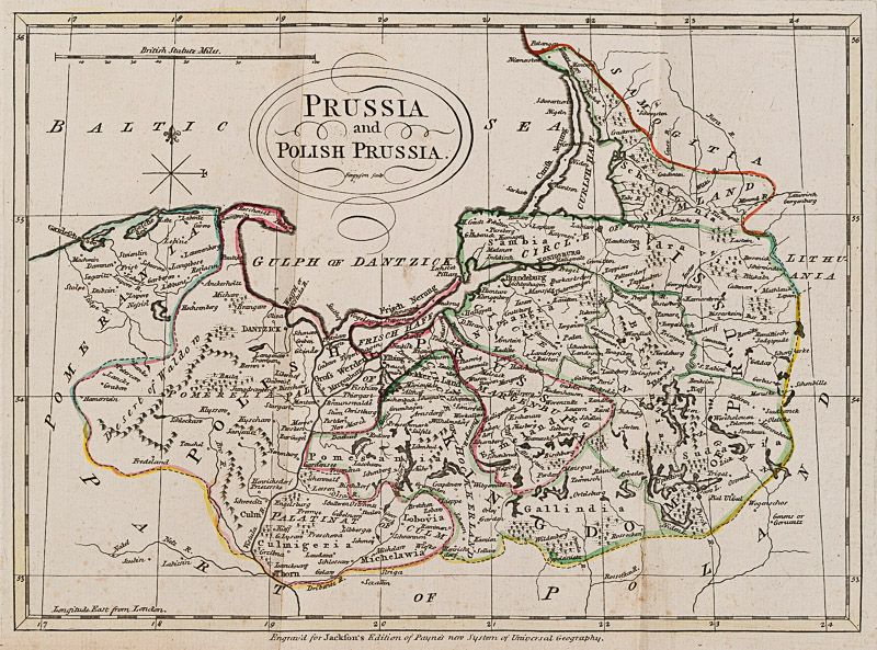 [Prussia and Poland] – Hand-coloured Large Fold-out-Map of “Prussia and Polish Prussia” [Colour Map – 30 cm wide x 22 cm high]