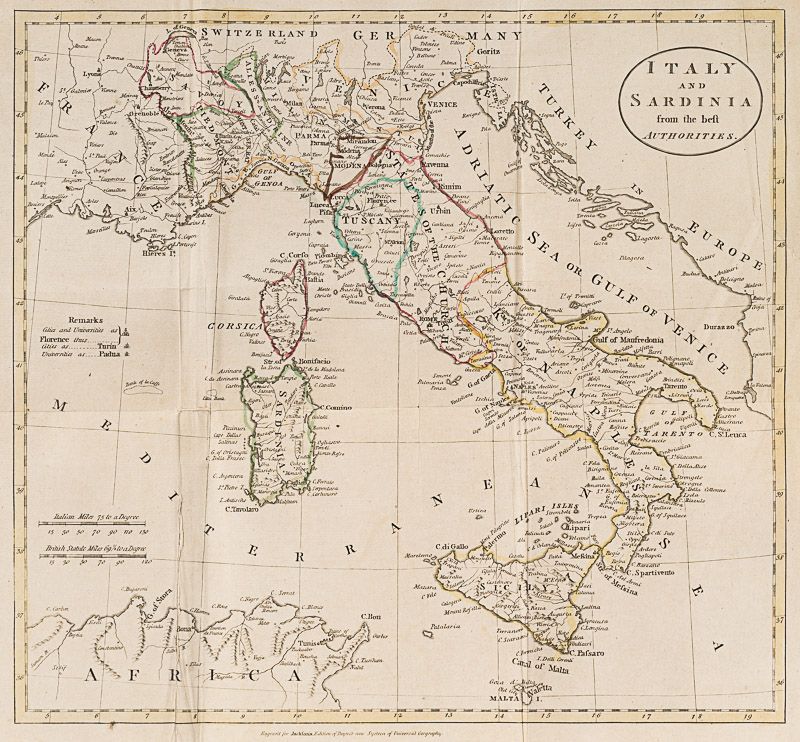 [Italy and Sardinia] – Hand-coloured Large Fold-out-Map of “Italy and Sardinia from the best Authorities