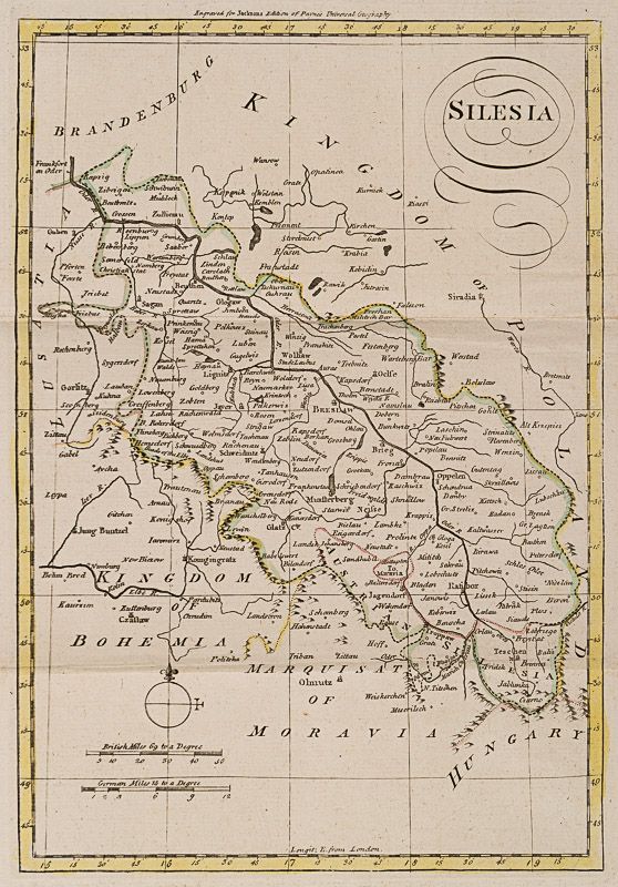 [Silesia (Schlesien)] – Hand-coloured Large Fold-out-Map of “Silesia” (1794) [Colour Map – 20 cm wide x 29 cm high]
