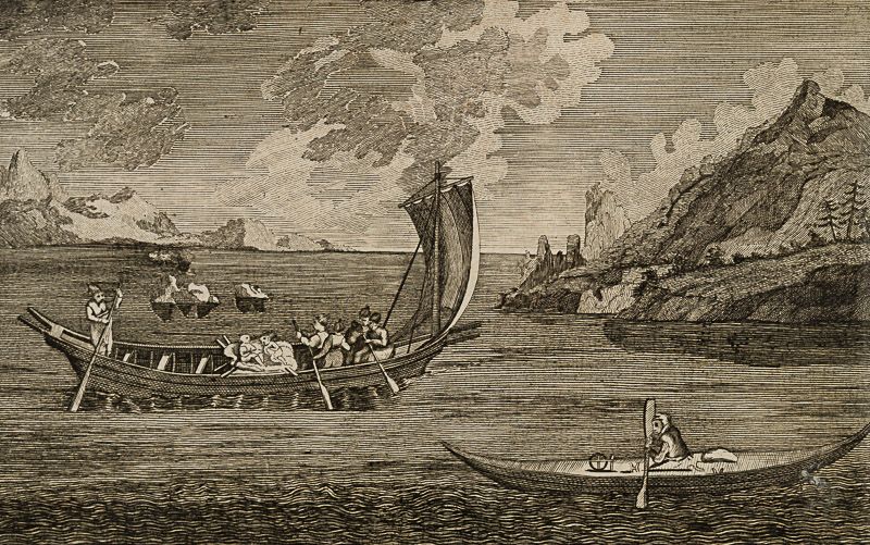 Copper-Engraving showing “Canoes used by the Greenlanders” and “Habit of the Natives of Greenland″