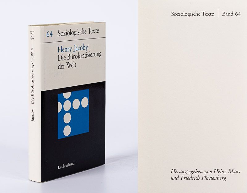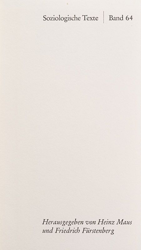Neuwied / Berlin, Luchterhand, 1969. 12cm x 19.5 cm. 340 pages. Original Hardcover with illustrated dustjacket. Sehr guter Zustand / Kein Besitzvermerk, Keine Anstreichungen. Very good+ condition with only minor signs of external wear to dustjacket only. Endpapers slightly discoloured. Internal pages in excellent condition. [Soziologische Texte Herausgegeben von Heinz Maus und Friedrich Fürstenberg (Band 64)].