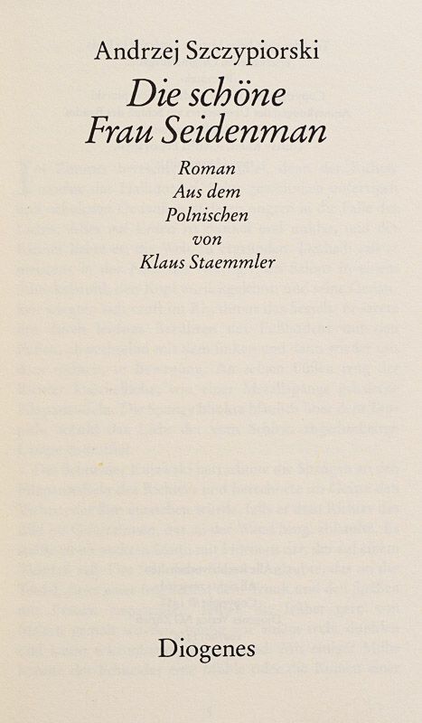 Die schöne Frau Seidenman. Roman aus dem Polnischen von Klaus Staemmler.