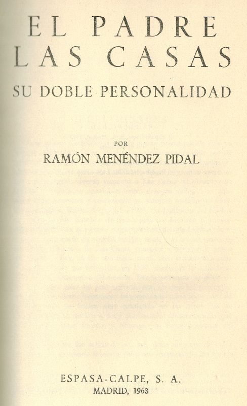 Don Ramón Menéndez Pidal, en 1940, comenzó a interesarse por Fray Bartolomé de las Casas, con motivo de tratar de América y Carlos V. Su primera impresión fue adversa respecto a Las Casas, al comprobar su “intenso y monótono apasionamiento”, siempre violento en acusar a conquistadores y encomenderos, siempre melifluo en “exaltar a los indios”.